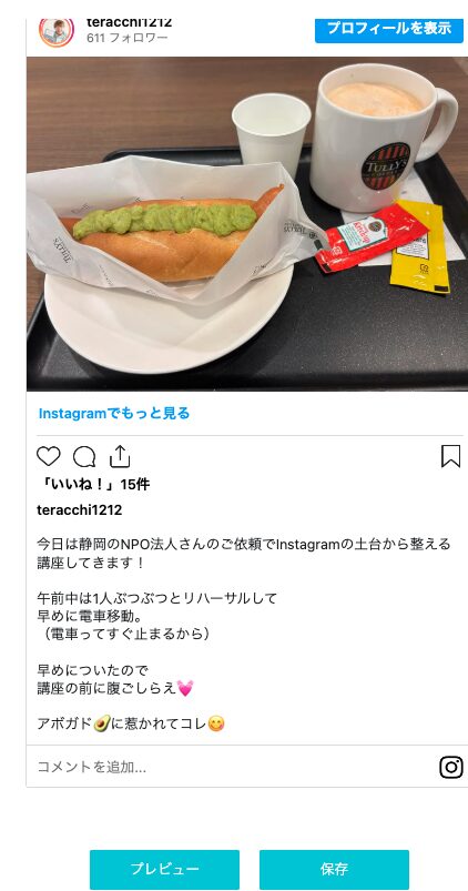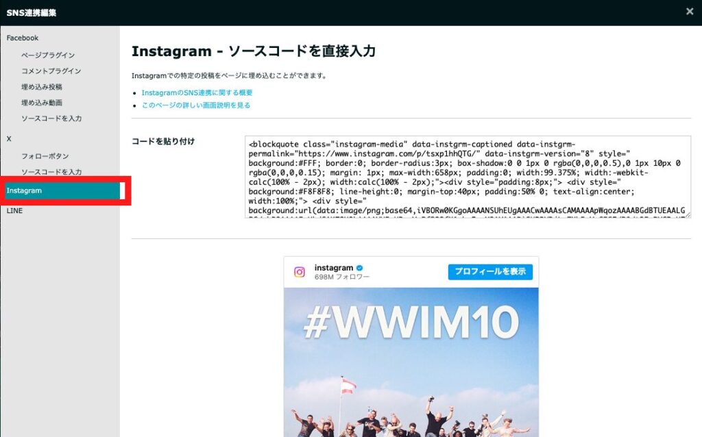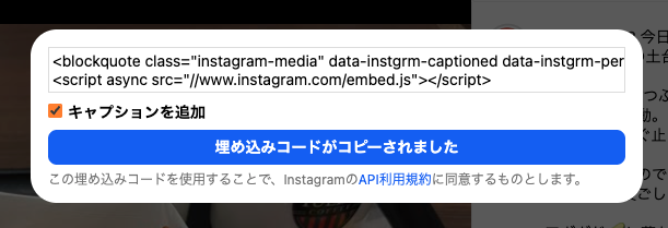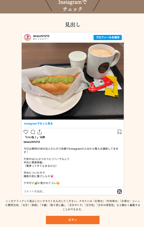 ペライチのページにインスタグラムの記事をそのまま表示する機能があります。