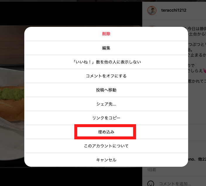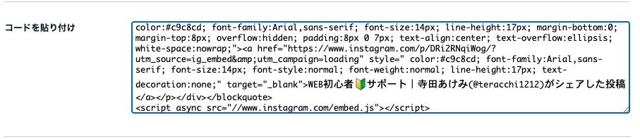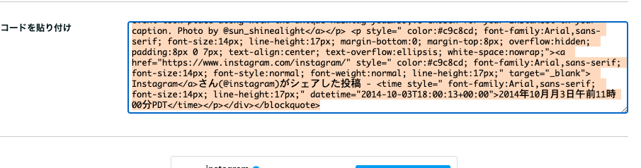 5.先ほどインスタグラムでコピーした内容を貼り付けます。