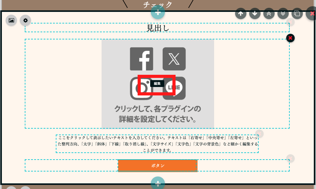 2.↓このようなブロックが挿入されますので、「編集」を押します。