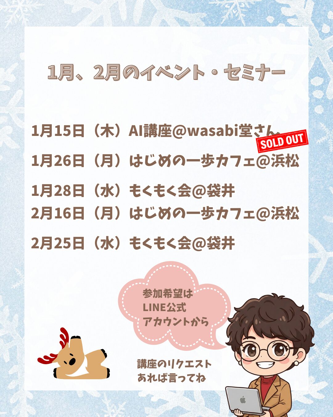 1月15日(木)AI講座おかげさまで満席になりました!!
